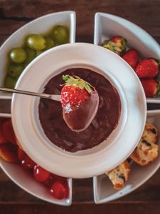 Para finalizar o cardápio da data mais romântica do ano, não poderiam faltar as sobremesas especiais: semifreddo de especiarias com calda de frutas vermelhas; dôme trufada de chocolate 70 % cacau com tangerina e alecrim; verrine trufada bicolor de maracujá e leite de coco e chocolate 70 %; e fondue de chocolate Cuore di Cacao. O kit completo para duas pessoas custa R$198 e acompanha ainda velas em formato de coração, caixinha com 2 chocolates Cuore di Cacao e dicas de preparo.