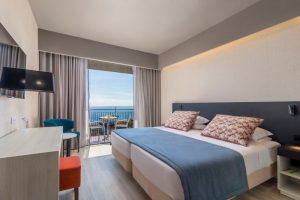 Há 147 quartos confortáveis, com decoração contemporânea e aconchegante e todas as comodidades, como mini bar, cofre eletrônico e TV. Em três categorias, as acomodações têm janelas amplas e vistas deslumbrantes, ou para os jardins ou para o oceano, sendo algumas com varanda.