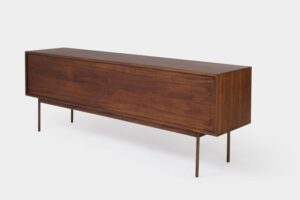 Buffet Orleans: Com portas e gavetas embutidas, o Buffet Orleans oferece grande capacidade de armazenamento sem perder a simplicidade formal dos volumes puros, ideal para salas de estar e jantar modernas.