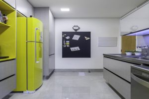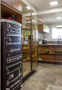 Para um ambiente clean, Cristiane Schiavoni sugere a utilização da cor branca com texturas. Ao passo que, para um espaço mais contemporâneo, tons como o prateado ou um acabamento como o de aço escovado são boas pedidas. Pensando em um décor vintage, cores expressivas como o azul e o amarelo claro e o vermelho são escolhas que se adequam super bem à proposta. “Podemos também investir em um lado afetivo, com o envelopamento acompanhado por mensagens positivas em uma atmosfera de lousa”, sugere.
