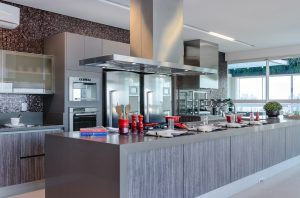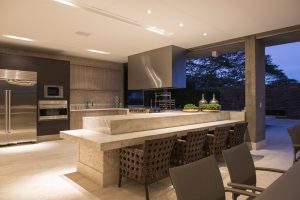 O mesmo se aplica às churrasqueiras. Ha versões a gás ou de pedras vulcânicas, que devem ser apoiadas sobre as bancadas (devidamente planejadas de acordo a cada eletro), como um cooktop, além das tradicionais. “Cada ambiente precisa ser projetado de modo único e exclusivo, atendendo as necessidades dos moradores, seu estilo de vida e respeitando o espaço”, comenta a arquiteta Patricia Penna.