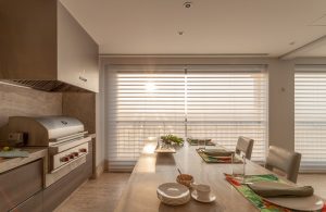 No caso das varandas para apartamentos; elas estão cada vez mais espaçosas e têm sido integradas ao interior dos apartamentos e isoladas do exterior, por meio dos fechamentos em vidro. “Dessa forma, conseguimos a ampliação do setor social, quando o cliente deseja”, explica Patricia.