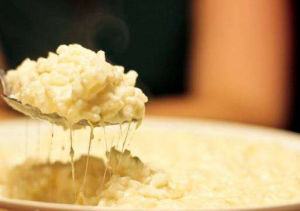 Em uma panela, coloque o óleo e o alho em fogo baixo. Acrescente o arroz e frite por um minuto, mexendo bem. Despeje a água e o sal e aumente o fogo para médio. Deixe cozinhar até quase secar completamente. Neste ponto, despeje o creme de leite, o queijo e o champignon. Deixe no fogo até que o queijo derreta completamente e a mistura fique cremosa. Sirva imediatamente.