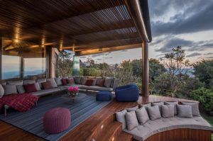 Para fazer da área externa uma sala de estar, explica Eduarda, alguns cuidados extras com as escolhas de móveis devem ser tomados. “Exatamente por serem colocados em um ambiente que sofrerá a ação do tempo diretamente, sofás impermeáveis e com tecido resistente aos raios solares são as melhores opções, mesmo que a área seja coberta”.
