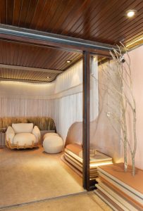 A arquiteta Flávia Campos e a designer de interiores Sandra Paes apresentam dois ambientes para a mostra Morar Mais SP, a bilheteria e o hall de entrada, intitulado “Hall acalento”. O evento ocorre até o dia 02 de julho, na Rua Deputado Euvaldo Lodi, 145, no bairro do Morumbi, sob o tema “Neuroarquitetura”.