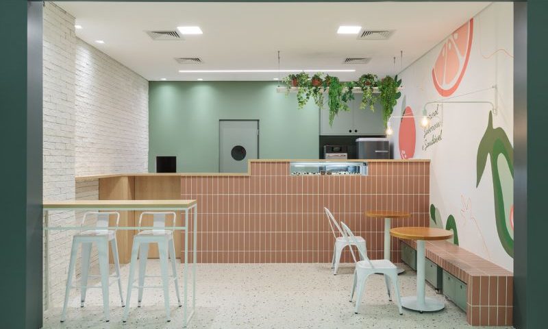 O desafio era alinhar as necessidades técnicas com a identidade da marca, incorporando cores e materiais que a representassem. O Estúdio Maré desenvolveu cuidadosamente vários pontos de consumo tanto dentro quanto fora da loja, proporcionando opções para os clientes desfrutarem de refeições ao ar livre.