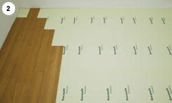 - Os rolos do Eucasoft Premium devem ser instalados sempre opostos ao sentido da colocação das réguas do Eucafloor diretamente sobre o contrapiso (fotos 1 e 2).