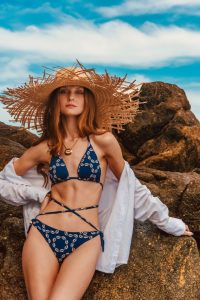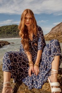 Diferentes tons de azul remetem ao céu inigualável da Bahia, e se unem a tons de verde, violeta e rosa. Fabi Freixo convidou artistas a criarem estampas exclusivas para a coleção, e identificamos o charme de vilarejos de pescadores, as contas de búzios, sereias e matas em desenhos que já nascem icônicos. “Quis trazer uma narrativa genuinamente brasileira para Infinita Fé, homenageando uma cultura tão rica em costumes e crenças”, diz a estilista.