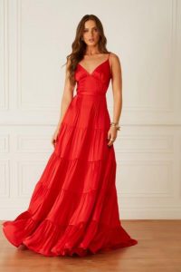Com shapes atuais e tecidos nobres, as peças carregam o toque sofisticado e feminino, que representa a identidade da marca. As opções de vestidos longos aparecem em cores fortes e cheias de identidade, como é o caso do vermelho, um clássico que é associado a elegância e a sensualidade.