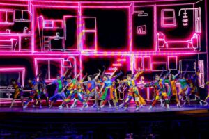 Aqui, a tela de cinema vira cenário, com interações constantes com o elenco, criando uma experiência dinâmica, envolvente e surpreendente. A cenografia digital ocupa uma tela de 140 m², desenvolvida especialmente para o Roxy, ampliando a linguagem do espetáculo e reforçando seu caráter imersivo.