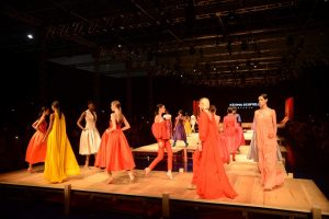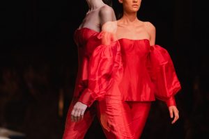 Os drapeados feitos manualmente – trabalho que exige muitas horas de dedicação – são aplicados em diversas direções para apresentar propostas delicadas e elegantes que encantam aos olhos. Já os plissados aparecem em peças inteiras e os babados mais armados em forma espiral finalizam saias e vestidos.