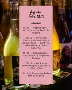 A Feira NUA, referência no movimento dos vinhos naturais no Sul do país, realiza em Curitiba sua maior edição no dia 30 de novembro. Sob o lema NUA — vinhos despidos de aditivos, o evento apresenta produtores que trabalham com mínima intervenção e práticas agroecológicas, conectando o público a vinhos que respeitam a verdade da uva e o terroir de onde vêm.