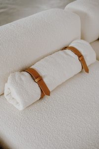 LÃ DE CARNEIRO, CINTAS DE COURO, ALMOFADAS SOLTAS,
