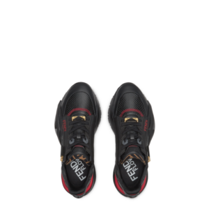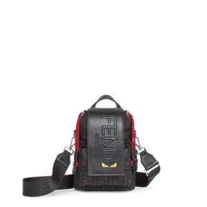 As peças para os homens incluem as bolsas Peekaboo ISeeU Small e Baguette Soft Trunk, ambas confeccionadas em couro Cuoio Romano preto, juntamente com a mochila FENDI Strike Mini, o porta-cartões e a carteira – todos adornados com o jacquard FF característico da marca em preto e cinza com detalhes em vermelho. Uma versão sofisticada da FENDI Eyes, com o logotipo FENDI Roma, é aplicada aos tênis FENDI Flow e às peças de ready-to-wear.