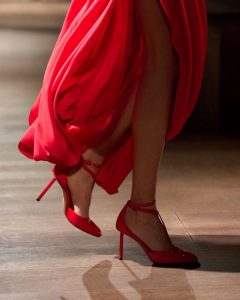 No calçado, este espírito exprime-se através de elegantes scarpins de salto alto e tiras duplas que envolvem o tornozelo. A peculiaridade deste sapato está no cabedal, construído em peça única, sem costuras. O salto fino, de formato cilíndrico, insere-se no interior da sola: esta peculiaridade dá-lhe o nome de “salto ilha”. O couro macio envernizado em preto, vermelho, bordô e verde oliva realça sua sensualidade.