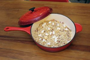 Destes pratos especiais, dois chamam muito a atenção. Um deles é a farofa de pipoca. Feita com pipoca triturada, leva ainda bacon e cebola, entre outros temperos. Já o Entrevero, prato típico da região sul do país, leva o pinhão e um mix de carnes. Na receita do Sale, entram picanha, linguiça calabresa, lombo e pimentão, além do pinhão.