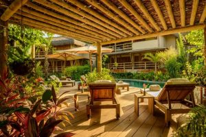 Com um estilo rústico, natural e sofisticado, inspirado na arquitetura balinesa, o hotel é um local onde todos os elementos da terra são respeitados e estão em perfeita harmonia. Os itens decorativos dos quartos foram escolhidos com base nas viagens de Inga ao redor do mundo. Tudo isso para conferir uma sensação de lugar único. De quebra, os bangalôs são cercados por uma vegetação abundante e têm belas vistas para o mar, para os jardins ou para uma das piscinas.