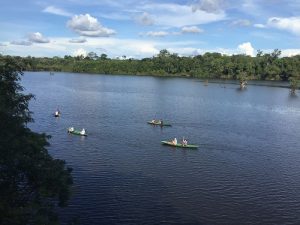 A aventura começa logo cedo, às 7 horas, no embarque para o Lodge, que fica na região de Autazes, a cerca de 3 horas de Manaus. No trajeto é possível ver o encontro das águas dos rios Negro e Solimões e visitar um flutuante típico da região, além de já ter uma ideia da paisagem que espera os visitantes.