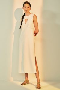 E a grife de Renata Schmulevith, conhecida por seus prints e grafismos, aposta para esta estação, em estampas inspiradas em pássaros, que são o grande destaque da coleção e aparecem em vestidos e macacões de modelagem ampla e superconfortável. Os pássaros também aparecem nos acessórios (braceletes, pingentes e uma tiara para noites de festa ao ar livre). Os tecidos, em sua maioria, são em malha fria, que além de serem perfeitos para o verão, são uma marca registrada da FIT.