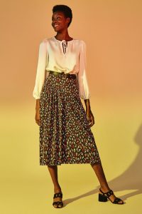 E a grife de Renata Schmulevith, conhecida por seus prints e grafismos, aposta para esta estação, em estampas inspiradas em pássaros, que são o grande destaque da coleção e aparecem em vestidos e macacões de modelagem ampla e superconfortável. Os pássaros também aparecem nos acessórios (braceletes, pingentes e uma tiara para noites de festa ao ar livre). Os tecidos, em sua maioria, são em malha fria, que além de serem perfeitos para o verão, são uma marca registrada da FIT.
