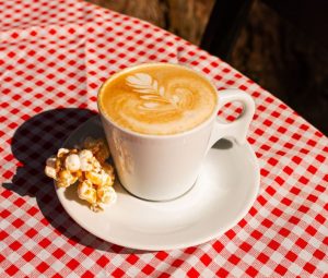 - Capuccino de pipoca com pipoca caramelizada (servido ao lado da xícara) R$ 14