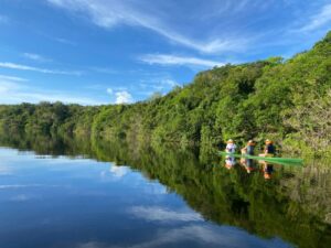 Durante o período da cheia dos rios, que ocorre geralmente entre abril e agosto, sendo considerado uma das melhores épocas para explorar a região, os visitantes têm a oportunidade de realizar passeios de canoa a remo não apenas pelos igarapés, mas também pelos igapós, áreas de floresta inundada que revelam paisagens únicas e uma proximidade ainda maior com a biodiversidade local.
