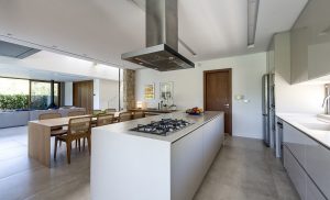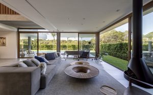 Localizada em um condomínio de Jurerê Internacional, praia da região Norte de Florianópolis (SC), a casa tem “aberturas que criam a fluidez da arquitetura de um autêntico passeio, valorizando os percursos internos e trazendo o exterior para dentro dos ambientes”, diz Marília, referindo-se ao conceito da promenade arquitetural adotada.