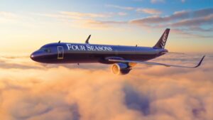 No coração da experiência está o Airbus A321neo-LR, que foi totalmente customizado para a marca Four Seasons. Com uma das cabines mais espaçosas da categoria e configurado para apenas 48 viajantes, o ambiente a bordo combina elegância com conforto descontraído. Uma equipe especializada — incluindo concierge, chef executivo, diretor de experiências e médico — garante que cada etapa da viagem seja impecável.