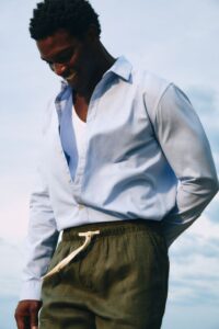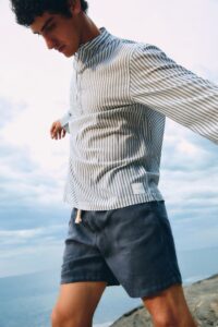 O mix de produtos revisita peças bordadas, como as linhas LaiseLocal e Vena, e fortalece a categoria de beachwear com novos shorts de praia e bermudas de alfaiataria em linho. A proposta é oferecer versatilidade para o homem contemporâneo, permitindo transições fluidas entre o ambiente urbano e o litoral.