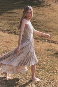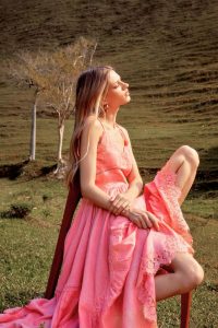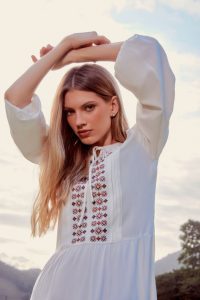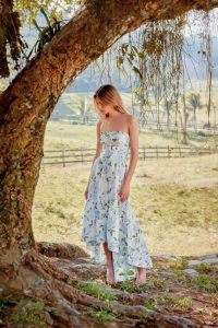As estampas exclusivas da marca chegam para retratar ainda mais liberdade e fluidez para o lançamento. O print Hortência, com fundo branco, retrata a flor azulada, acompanhada por folhas verdes. Aparecendo em uma variedade de modelos de vestidos, além de tops e saias, a estampa traz a sensação de paz e agrega movimento e leveza para o visual. Já o rapport Trevinhos é composto por trevos de três, quatro e até cinco folhas no tom verde musgo, e simboliza sorte, esperança e renovação. “O trevo é um elemento muito simbólico! Uma pura representação de sorte, esperança e renovação. A partir disso, trouxemos a estampa para diferentes estilos de vestidos, e, após esse estudo, abrimos para outras peças, como jaquetas cropped, tops, saias e shorts.”, finaliza Manuella.