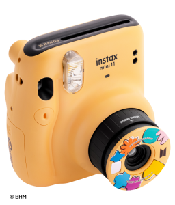 Projetada para combinar a portabilidade ideal com um visual moderno e na moda, a Instax Mini 11 BTS versão Butter conta ainda com toques especiais para os fãs do grupo, como um vibrante corpo Butter Yellow com moldura colorida e alça de ombro combinando, além de acessórios divertidos para o botão do obturador, visual de jóias e emblema do coração Butter. Leve e com design de corpo arredondado e ergonômico, que se encaixa perfeitamente nas mãos dos usuários, a câmera possui ainda funções práticas, que possibilitam a captura perfeita de imagens em diferentes ângulos e situações.