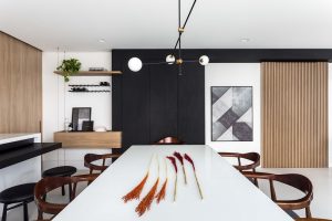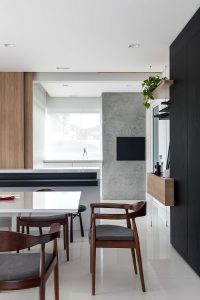 Para uma jovem família curitibana, amplos ambientes e a ideia de transformar e valorizar suas relações entre si através do novo lar eram necessidades básicas no apartamento de 260m². Apreciadores de gastronomia e vinho, os moradores desejavam um local propício para reunir familiares e amigos em jantares ou encontros ao pé da lareira. Sendo assim, o projeto, assinado pelas arquitetas Carolina Danylczuk e Lisa Zimmerlin, da UNIC Arquitetura, teve como fio condutor a ideia de conexão e convivência, através de espaços que unissem uma estética clean à funcionalidade necessária dos dias atuais.