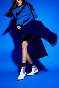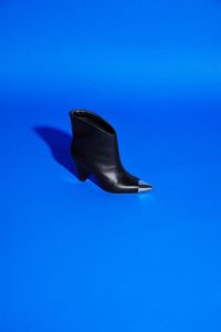 Assimetrias também marcam os modelos de sapatos, assim como saltos variados: desde os mais altos até os blocados. E não poderia faltar o western, com uma ankle boot coringa que vai bem da alfaiataria até os looks casuais. “Na cartela de cores, elegi minhas preferidas, como preto, branco, azul e os metalizados.”, finaliza.