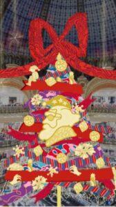 Como ocorre todos os anos, a Grande Árvore de Natal embeleza o espaço central da Galeries Lafayette Paris Haussmann. Situada sob a cúpula, materializa o espírito das festas de fim de ano e convida ao encantamento. Neste ano, está adornada com as ilustrações de Jeanne Detallante e embrulhada com laços luxuosos como o mais belo dos presentes. Com 16 metros de altura, é adornada com 8 km de guirlandas com LEDs, 560 kg de fitas e 300 kg de tecidos.