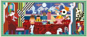 Complementarmente, a artista diz que era necessário ilustrar a data e homenagear as artes decorativas. “Para isso, minha visita aos arquivos foi fundamental para imaginar um universo único, ao mesmo tempo em que preservava uma parte vibrante desse patrimônio. Imaginei, então, um universo rico em materiais e cores e uma família de personagens que habita este cenário. Temos o banquete, a cena principal das vitrines, com muito preto e vermelho, recorrentes em todo o projeto de decoração, assim como o laço gigante que estará no alto da Grande Árvore sob a cúpula da loja”, antecipa.