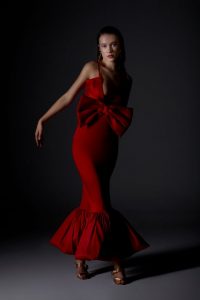 Para dar um toque mais glamuroso, neste primeiro drop, além do básico preto e branco, a marca aposta em detalhes em dourado, prata, bordados em paetê e peças nas cores vermelho e marrom.