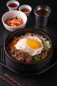 Um dos ensopados mais comuns na culinária coreana que é o Kimchi-jjigae feito com kimchi (conserva de acelga apimentada), carne bovina, tofu e cebolinha verde acompanhado de arroz branco. Já o Bibimbap é feito com arroz, mix de vegetais salteados, mignon em tiras e ovo frito preparado com “gochujang” – pasta de pimenta vermelha coreana. O famoso churrasco coreano leva o nome de Burgogi e é feito com finas fatias de contrafilé marinadas em caldo a base de molho de soja.