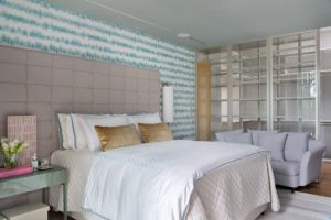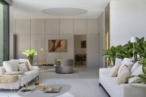 Com pé-direto duplo, a casa conta com decoração elegante, mas não exagerada. O verdadeiro “coração” da estrutura é o andar térreo, onde ficam a sala de jantar, cozinha, espaço gourmet, living e quarto de hóspedes. No mobiliário, tonalidades e padrões conversam com o mood clean dos ambientes e as linhas retas predominam, dando um ar de sofisticação, modernidade e bom gosto. A Simonetto trabalha no conceito de ajustes milímetro a milímetro com muitas opções de cores e texturas, o que permite mais liberdade de criação aos arquitetos e designers.