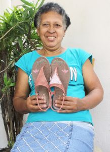 O modelo com 6 cores diferentes tem como proposta permitir que as consumidoras bordem na parte superior do produto, traduzindo assim a moda para a realidade da mulher brasileira. Além da possibilidade de customizar a própria sandália, o calçado também tem bordados exclusivos na palmilha feitos pelas Artesãs da Linha Nove, que retratam em suas artes flores que simbolizam ao mesmo tempo a delicadeza e força de ser mulher.