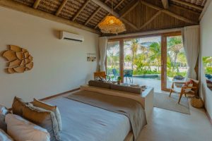 O Carnaúba Wind House disponibiliza diversas opções de bangalôs, de uma a quatro suítes, todos com entradas privativas, situados de frente para o mar e projetados pelo renomado arquiteto Miguel Pinto Guimarães. “A arquitetura do Wind é uma homenagem às pipas do esporte. A sede, o restaurante e o bar formam um desenho inspirado em um origami de dobraduras de telhados, como uma sucessão de pipas no céu. Nos bangalôs, buscamos a simplicidade com máximo conforto, inspirados nas vilas de pescadores do litoral nordestino. É uma interpretação contemporânea da arquitetura caiçara, com fachadas integradas à paisagem, na cor da areia e com telhados feitos das copas das carnaúbas, em total conexão com o bioma local”, explica Miguel.