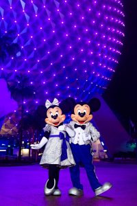 Ao entrar no parque, os visitantes darão de cara com um extenso mural com artes de mais de 100 personagens da Disney, localizado ao longo da passagem para o World Showcase. Os personagens Mickey e Minnie usarão seus looks platinados para a ocasião, combinando com a decoração platinada Disney 100 na área World Celebration, junto à estátua do Mickey. Já a Spaceship Earth será iluminada com um caleidoscópio de cores, ao som de uma versão especial da trilha sonora clássica da marca, When You Wish Upon a Star.