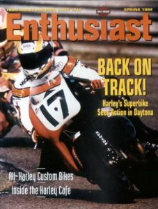 1994: A Harley-Davidson VR1000 Superbike estreia na Daytona 200 com o futuro piloto do Hall da Fama da AMA Miguel Duhamel, no mesmo ano em que Bruce Rossmeyer abre sua primeira concessionária Harley-Davidson na Beach Street.