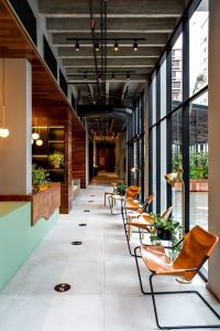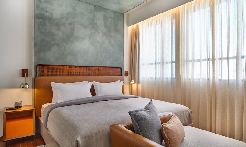 Desenvolvido pela arquiteta Maria Magalhães, os espaços comuns do hotel são ricos e acolhedores devido à abundância de luz natural e à paleta de inspiração local composta por azul-petróleo, coral e couros terrosos. Na chegada, os visitantes são recebidos por uma fachada alegre projetada pelo renomado artista de rua brasileiro Speto, além dos móveis únicos no saguão, poltrona São Paulo, projetada pelo vencedor do Prêmio Pritzker Paulo Mendes, e cadeiras girafas, de Lina Bo Bardi que desenvolveu o Museu de Arte de São Paulo.