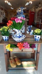 Há opções, também, de vasos já decorados com plantas tropicais ornamentais, como bromélias, samambaias e aglaonemas em lindíssimos arranjos feitos pelo produtor de Holambra Victor Domingues. Para os turistas, ou souvenirs holandeses, feitos em cerâmica azul de Delft são irresistíveis para recordar a visita à encantadora Cidade das Flores em plena Primavera.