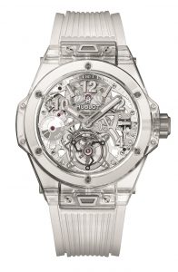 “A safira, que é um material forte e resistente, mas ao mesmo tempo frágil, abre um campo infinito de possibilidades. Nos últimos anos nós conseguimos industrializá-la e tingi-la com cores inéditas. Hoje, vamos ainda mais longe, no aperfeiçoamento deste know-how único: moldar minuciosos componentes feitos de safira bem como policarbonato de alta tecnologia “, conta Ricardo Guadalupe, CEO da Hublot
