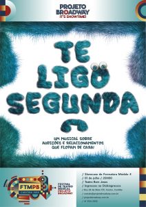 Celeste e Bruno se conhecem em meio a uma audição para um grande espetáculo teatral. Um relacionamento que tinha tudo para dar certo, não fosse justamente a caótica vida dos dois, sempre a esperar o telefonema com a resposta positiva de um teste. Baseado no famoso espetáculo da Broadway “Avenida Q”, Te ligo segunda é um musical de humor ácido, repleto de sátiras da vida cotidiana, com personagens nada convencionais: são fantoches manipulados