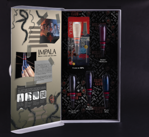 Inspirada em uma das maiores e mais amadas séries do momento, a Impala lança a coleção “Stranger Things” que traz em sua linha os esmaltes Cat Eyes, com uma tecnologia inédita realizada no Brasil. Além das cores com o efeito “olhos de gato”, a coleção também traz outras seis cores cremosas de alta cobertura que transmitem toda a nostalgia do enredo de Hawkins. Assim como na série, a coleção é dividida em duas partes: o mundo real, composto pelas seis cores cremosas e o mundo invertido com cinco cores de efeito Cat Eyes.