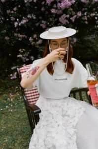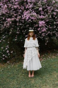 “Foi um desafio maravilhoso realizar essa collab! Pude trabalhar com materiais que não faziam parte do nosso repertório habitual, como a renda e o tule. Criar a modelagem perfeita para essas texturas tão delicadas nos levou a um novo patamar criativo. Além disso, revisitar a produção de camisetas, que já foram o carro-chefe da Inglesis, trouxe uma nostalgia especial para esse projeto”, compartilha Fernanda, cofundadora e diretora criativa da marca.