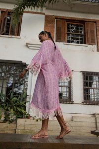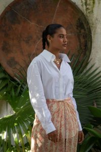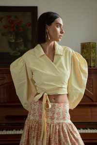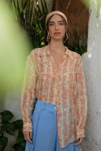 “Para o print principal do nosso verão, refleti sobre a caligrafia oriental e entendi que um símbolo pode representar mais do que uma palavra. E assim criei os primeiros esboços da estampa Zaya. O traçado irregular na estamparia que venho criando para a marca há algumas coleções, é explorado na seda, transformando peças leves de verão em composições confiantes.” – ressalta Fernanda.