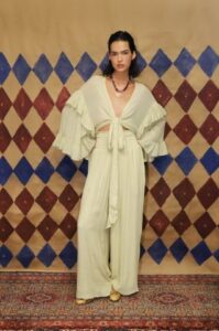 “Eu queria criar peças que carregassem essa sensação de giro constante da vida — nada é estático, tudo se transforma. La Rueda fala de confiar na intuição, de aceitar os ciclos e de vestir o movimento com leveza, presença e verdade”, comenta Fernanda Inglesis, diretora criativa e cofundadora da marca.